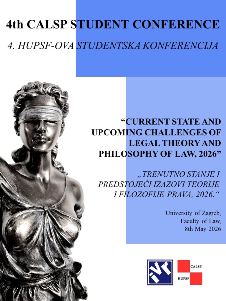 The 4th CALSP Student Conference: “Current State and Upcoming Challenges of Legal Theory and Philosophy of Law, 2026” will be held at the Faculty of Law, University of Zagreb on May 8, 2026.